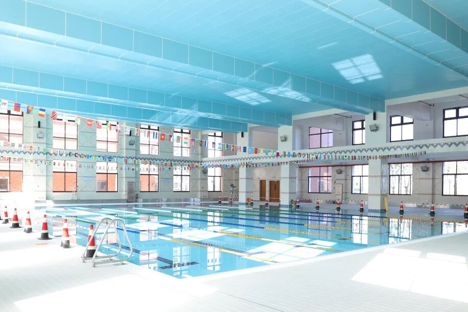 校园与大自然完美融合,营造了一片休闲憩息的天然学习场所。除普通教室外,还设有室内恒温游泳池、英语村、图书馆、田园教学区等设施,旨在为学生提供高品质的学习环境。