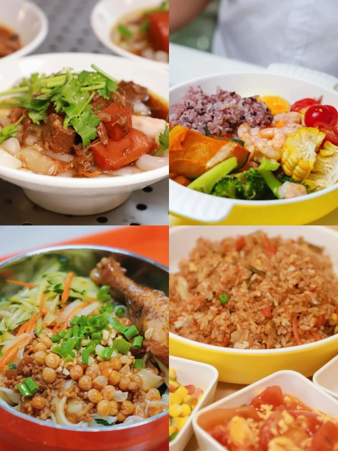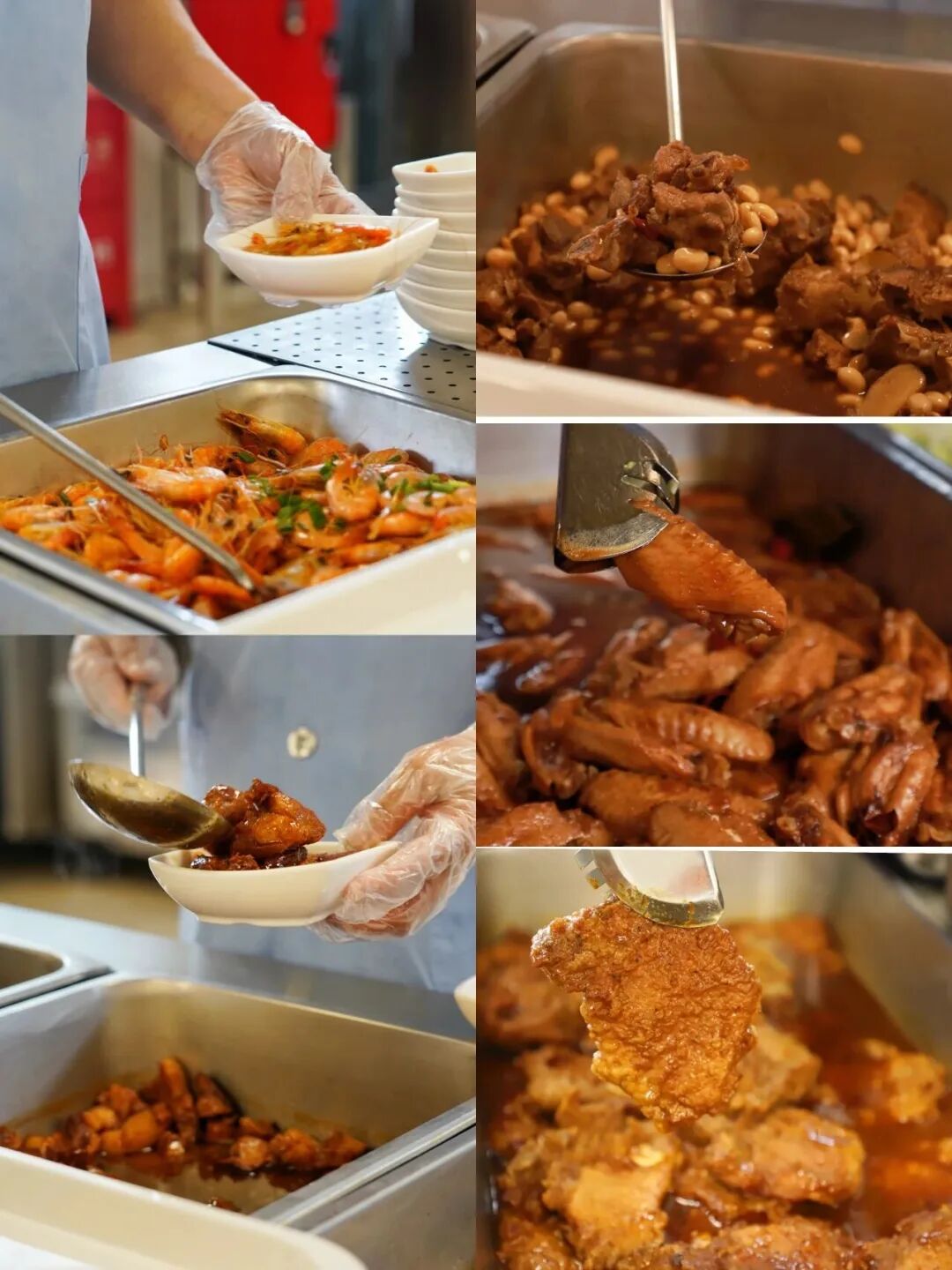 食堂采用零点模式,设有面食、中餐、铁板等七大档口,顺应季节变化每周调整菜单,保证同学们在学校的营养摄入。
